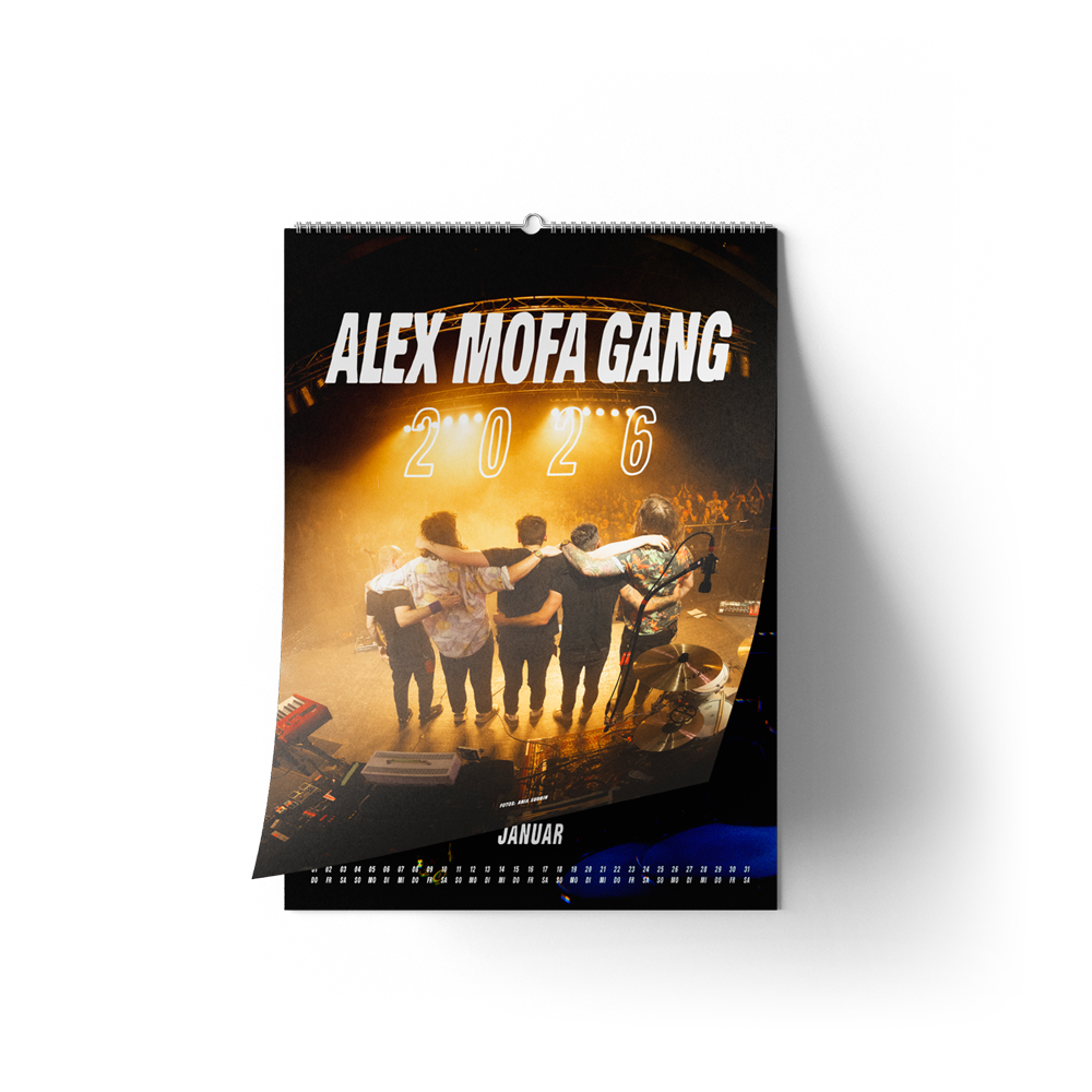 2026 wird ein Mofa-Jahr! Und damit ihr euch die Konzert-Daten auch direkt dick im Kalender anstreichen könnt, gibt es den aller ersten ALEX MOFA GANG Foto-Kalender. Jede Seite ziert ein Live-Foto, geschossen von der großartigeren Ania Sudbin. Ihre Bilder sind einfach zu schade um im Instagram-Feed zu versauern. Deshalb könnt ihr sie euch jetzt in groß an die Wand hängen und holt euch ein bisschen Konzertfeeling nach Hause. Dieser Kalender ist übrigens ein hervorragende Weihnachtsgeschenk für eure Liebsten! Wir schenken unseren Mamas auch welche ;-)